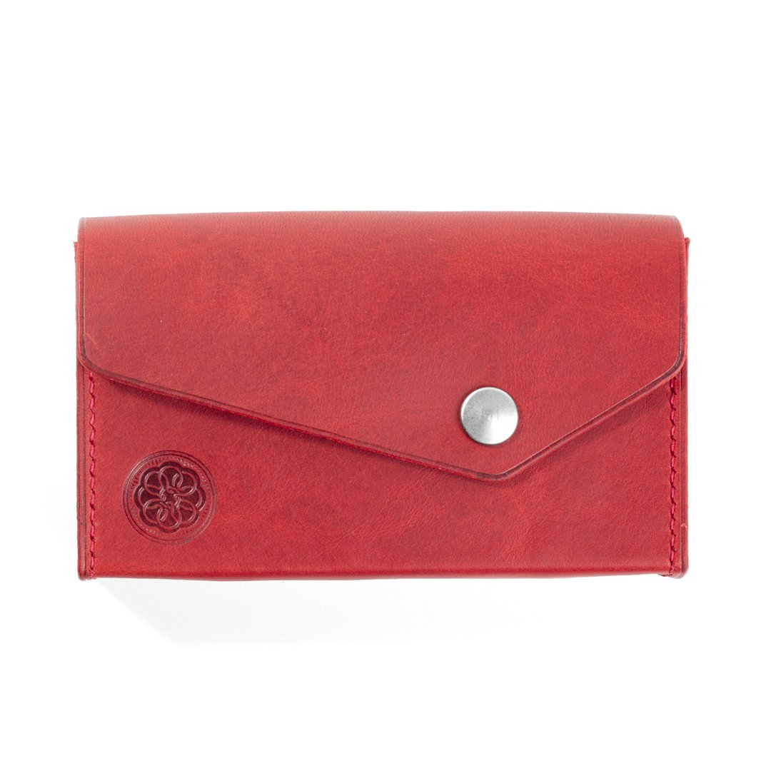 This pouch features an angled front pocket that makes it easy to remove the cards. The back of the pouch has an angled pocket that fits one or two credit cards or a few business cards.