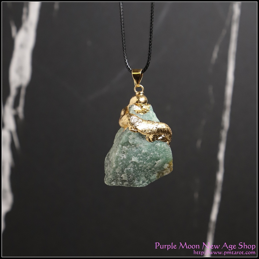 Crystal Pendant - Green Aventurine w/gold gilt Lapis