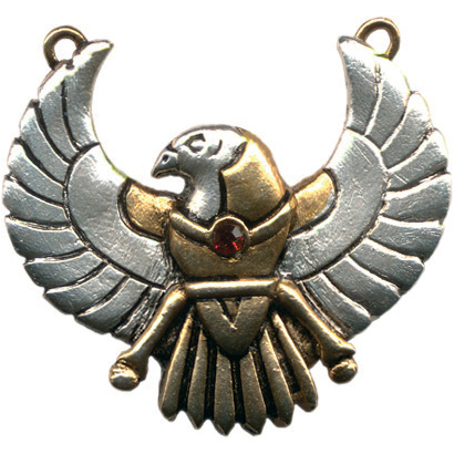 Son of Isis and Osiris, Sun God Horus lent his image as a falcon to the hieroglyphic symbol meaning "god" and many temples were dedicated to his name. For Safety on Journeys.