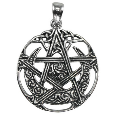 | Sterling Silver Cut Out Moon Pentacle Pendant |