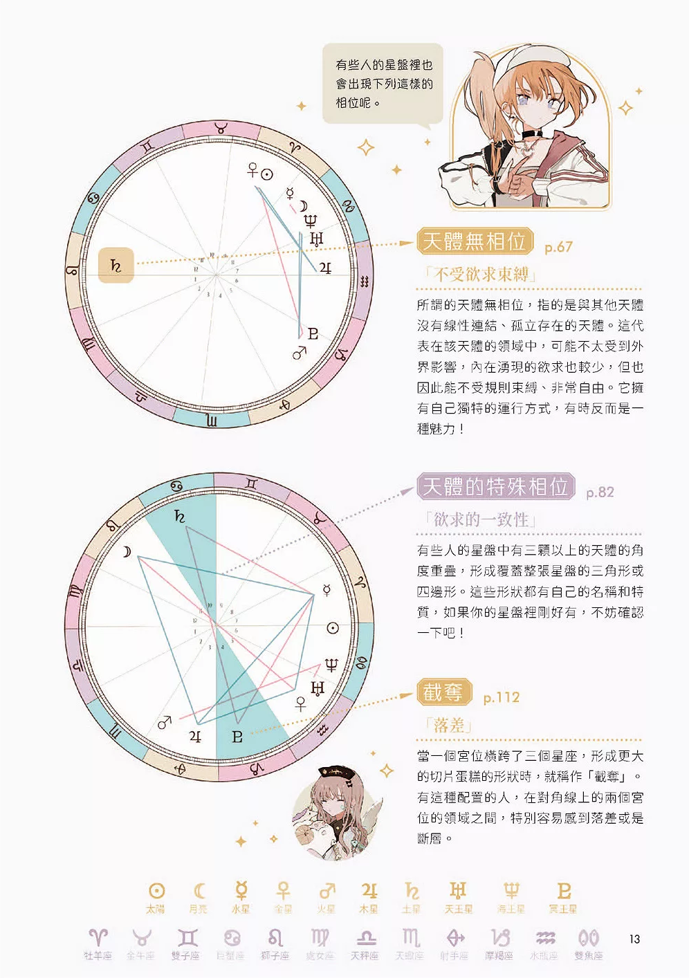 本書從最基礎的星盤結構與解讀術語開始,依序說明十二星座、十天體、相位、十二宮,以及上升點與天頂,帶領讀者一步步理解星盤。