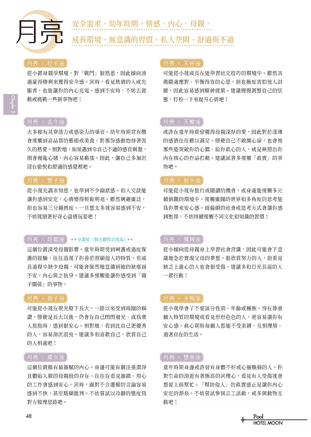 讀者將理解,個人並非單一星座,而是由多重元素交織而成的立體人格。