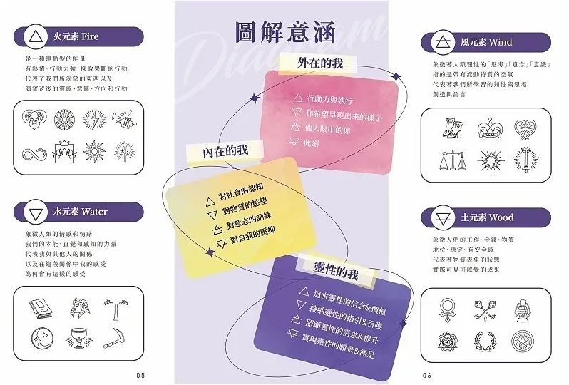 78張塔羅牌意結合世界四大元素,延伸出探索自我旅程的234句語錄。