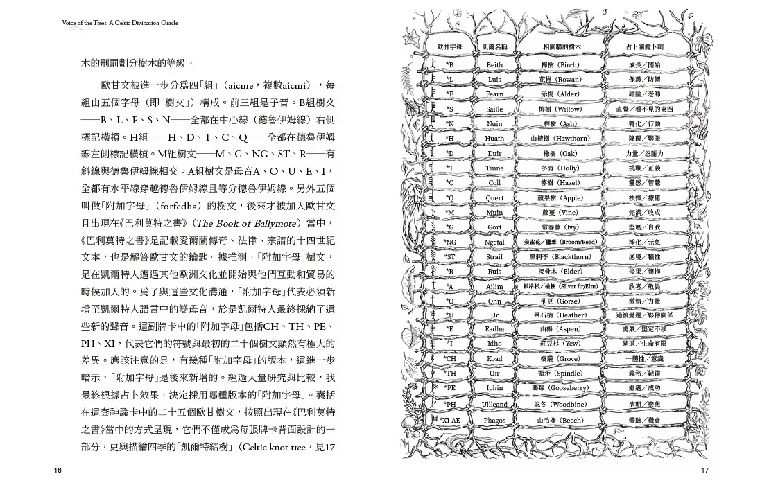 凱爾特聖樹神諭卡【精裝書盒版】:連結大地之靈,歐甘樹文的魔法力量(25張牌卡+解說手冊+絨布束口袋)(Voice Of The Trees: A Celtic Divination Oracle)