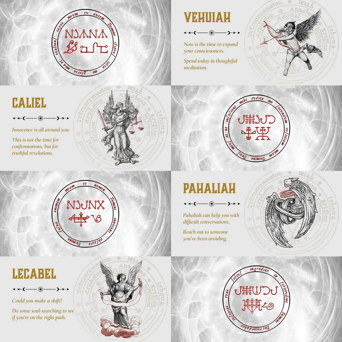 貨品介紹: Draw a card and let the divine wisdom of 40 angels of the Shem HaMephorash flow through you.