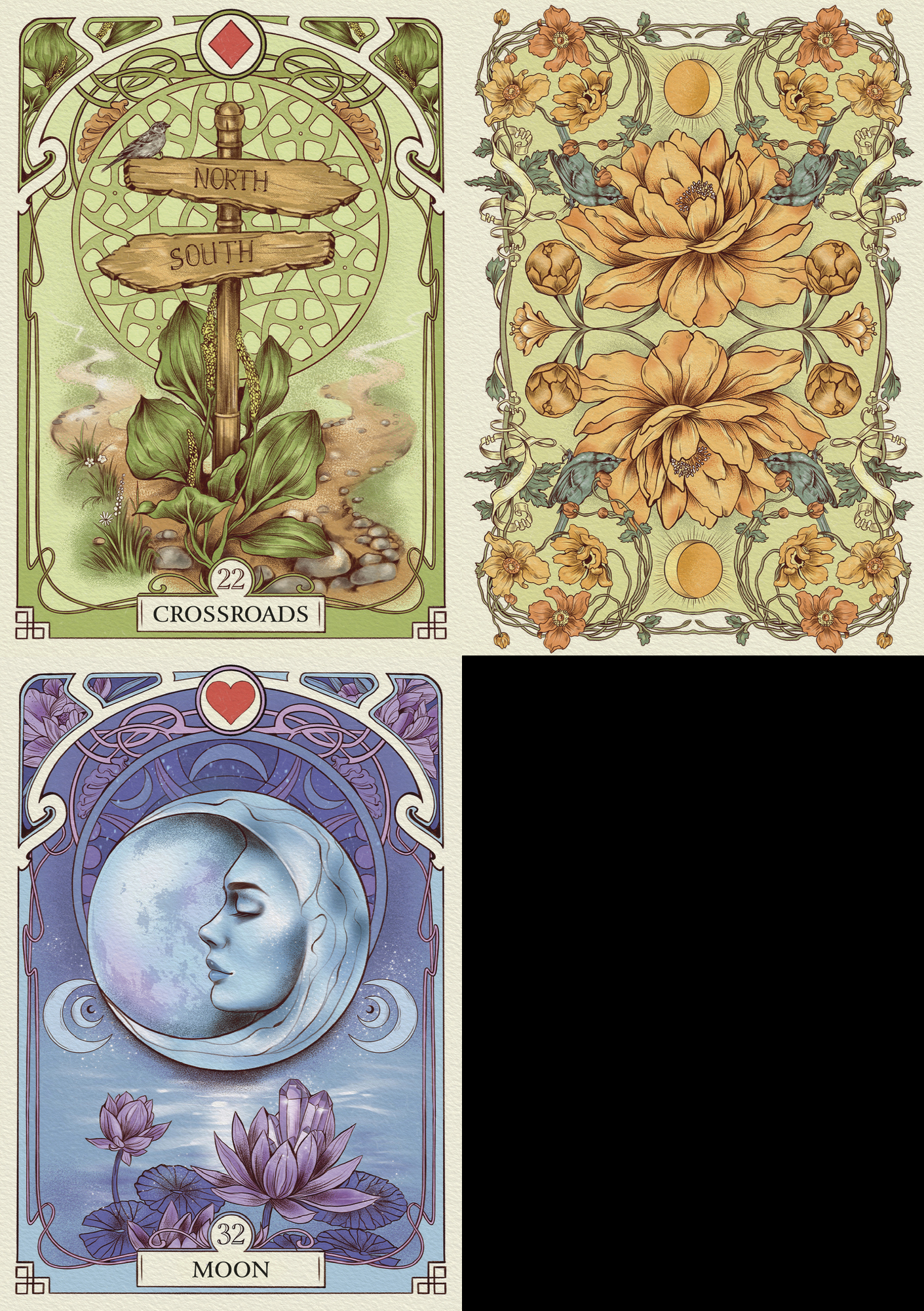 This oracle unites the ever-popular Art Nouveau style with the beauty and charm of the Lenormand tradition, bringing you a divinatory tool like no other. Anna Oginski presents a fresh take on the famous Lenormand imagery. She uses breathtaking floral visuals and evocative new elements that enhance your readings in ways you never imagined. This oracle deck acts like a romantic dance between your intuition and the future you've always dreamed of achieving.