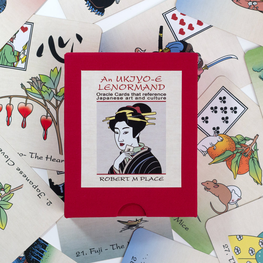 An Ukiyo-e Lenormand is a thirty-six-card oracle deck. The name Ukiyo-e, meaning “floating world,” refers to the style of Japanese woodcuts and paintings made famous in the 19th century.