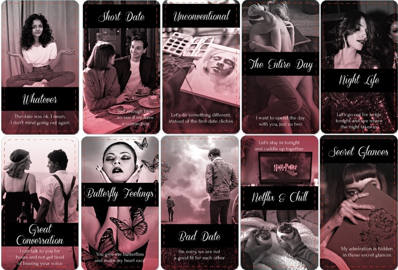 This deck is designed to see what will happen on your next date, their feelings and with who. The designer tried to include a wide variety of emotions and situations. These cards are very blunt so if you are easily triggered don’t buy the deck. Hope you enjoy this fun deck.