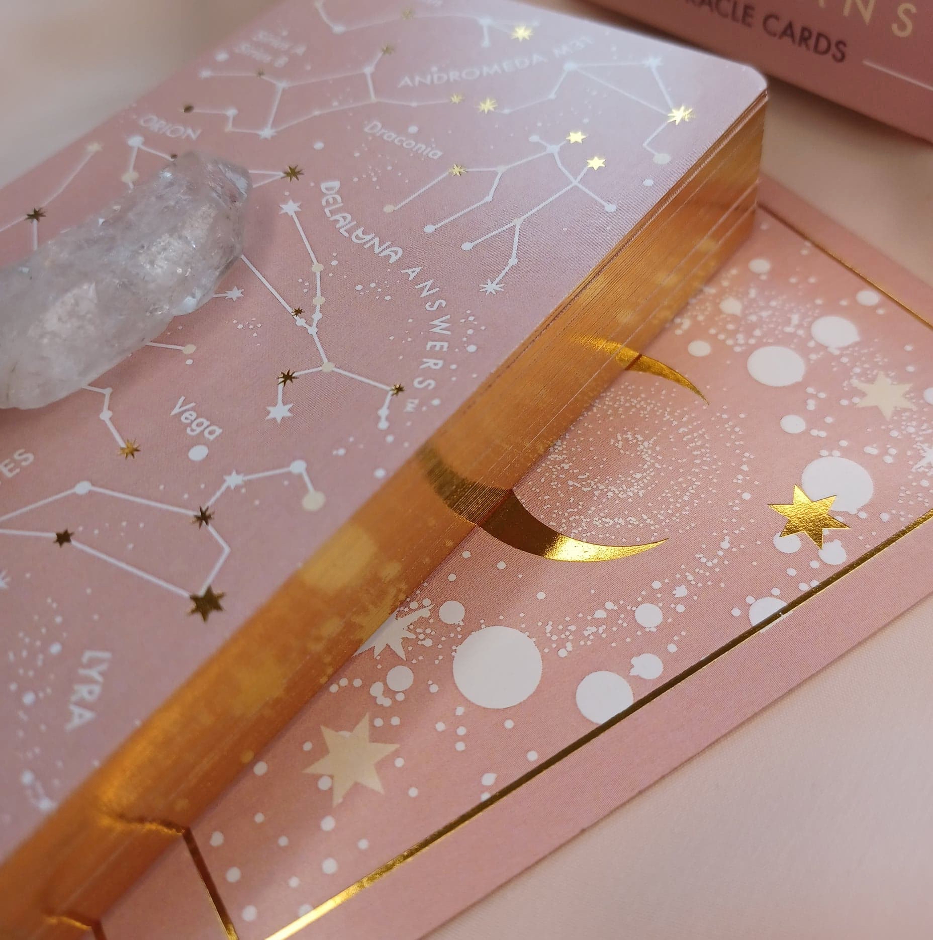 The oracle set was strategically designed to encompass the most frequently asked love questions throughout Delaluna‘s psychic career. Over 12000 spiritual reading sessions were considered in its development.