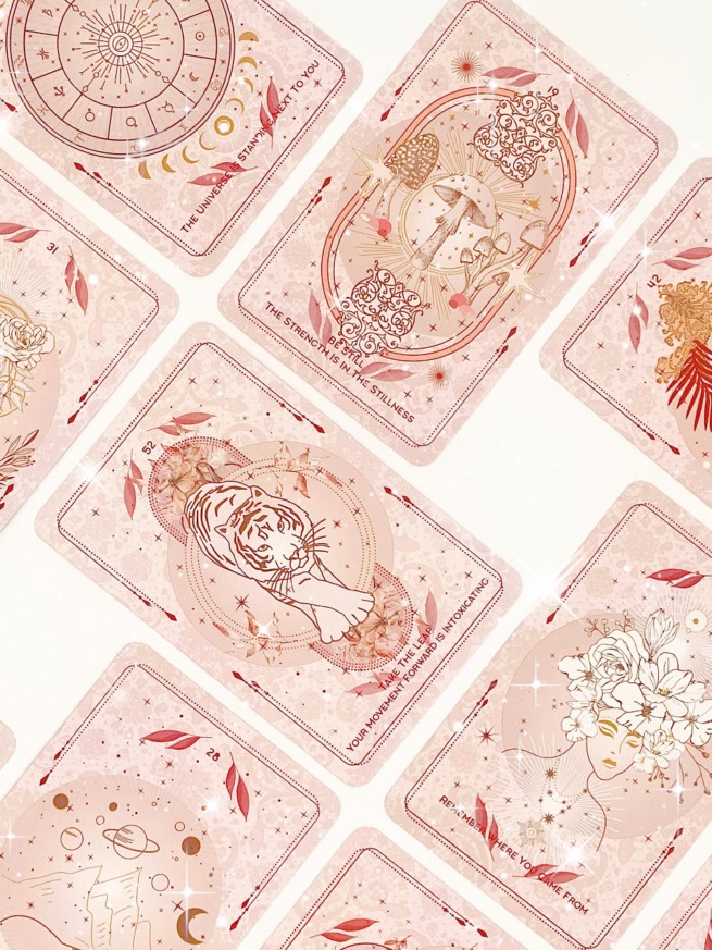 貨品介紹: 這套神諭牌是一套52張牌的神諭牌。它是用最大的積極性和愛製作的。它配有一本精美的小冊子,解釋每張卡牌。這些卡牌的尺寸為 90 × 140 毫米,採用漂亮的卡紙製成,感覺像玫瑰花瓣。 它具有啞光金色牌邊,牌面上也有由金箔製成的細節。