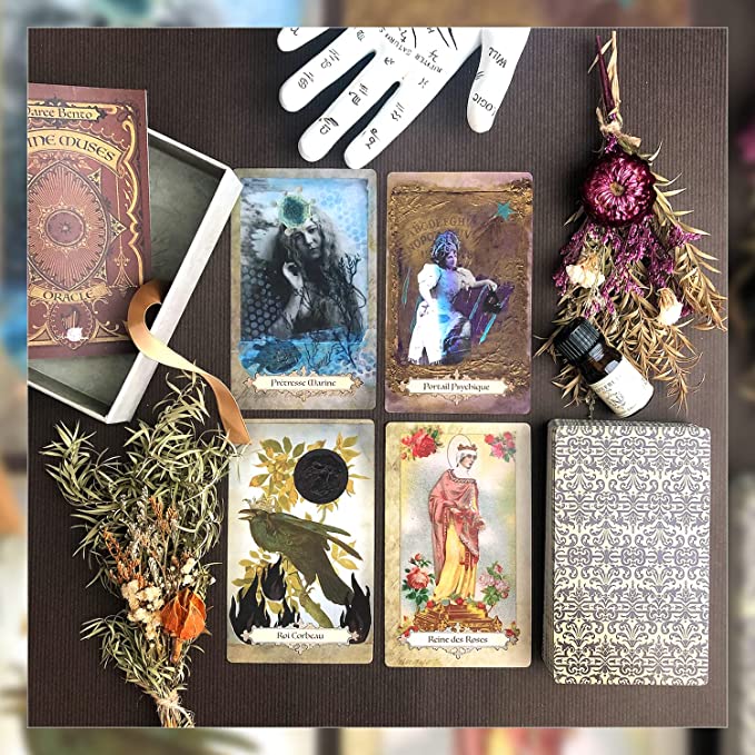 Vous aider à exploiter votre conscience magique et votre puissance intérieure, à identifier et comprendre votre chemin et vos cycles de croissance et de transformation, à apprendre à mieux vous connaître, vous et les autres, par l'observation des archétypes dans le monde, telle est la mission de cet oracle. L'Oracle Divines Muses vous ouvre les portes de la créativité, du mysticisme et de la guérison par l'usage de forces archétypales fondées sur l'alchimie, la magie et la mythologie. Votre instinct s'en trouvera affûté, favorisant ainsi votre développement personnel et votre transformation intérieure. Le jeu, composé de 54 cartes, est accompagné d'un guide complet comprenant des informations détaillées sur chaque carte, le sens des cartes renversées ou encore des suggestions de tirages. À propos de l'auteure Maree Bento est voyante professionnelle, masseuse spirituelle agréée et éternelle étudiante des arts mystiques et de guérison. C'est une artiste intuitive, auteure et créatrice de jeux. Elle adore randonner sous la pluie et déguster un thé chaud en lisant un bon roman aux côtés de Dante, son lévrier.