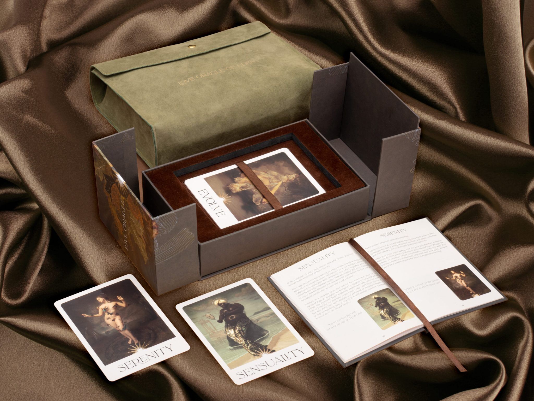 The art by A.J. Hamilton, also known as the Togfather, is inspired by classical art – but reïnvented to a more diverse and modern day composition. Each card has its unique value depicted in narratives of religion, mythology, history and art. A beautiful collection of sensual, elegant, divine feminine & masculine visual poetry that enables you to create your own garden of Eden.