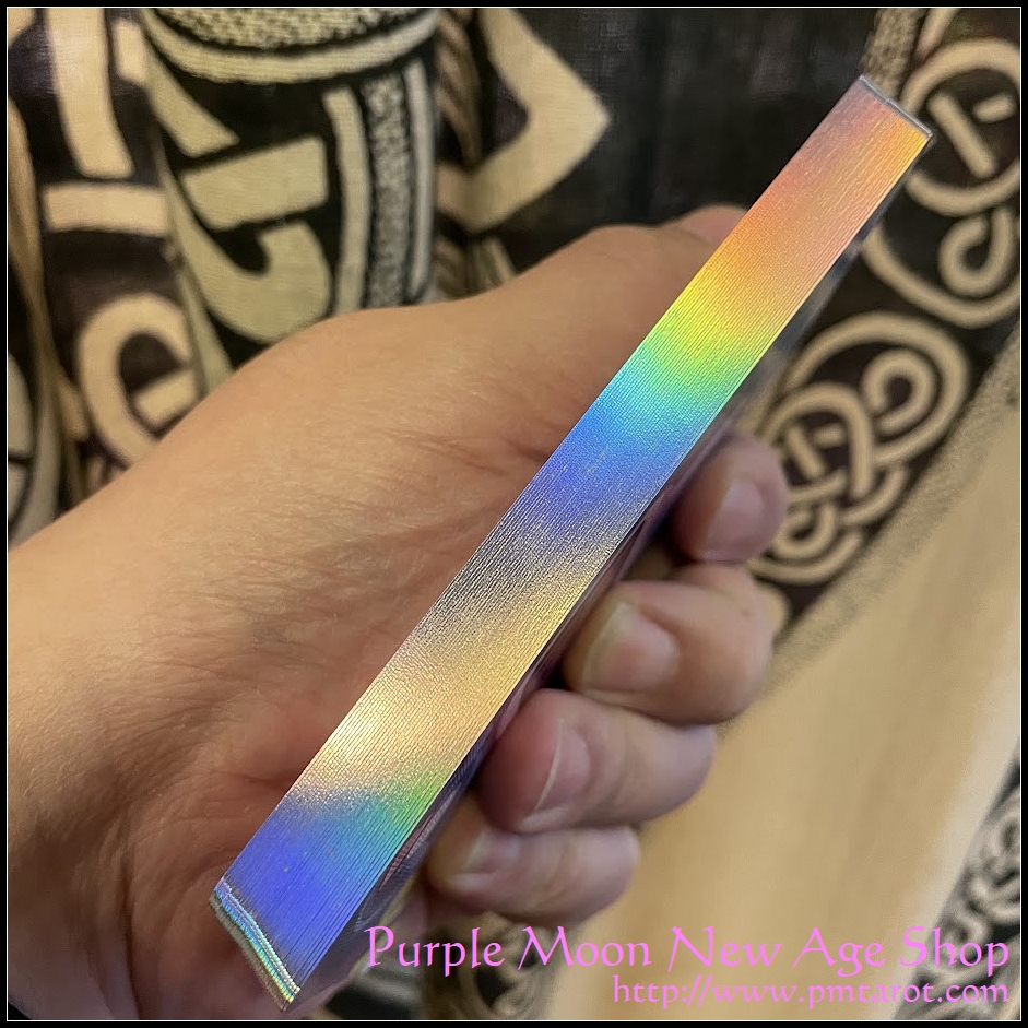To add to the magic, the cards will have holographic foil edges, complimenting the color palette of the deck and wrapping each border-less image in a gorgeous ring of holographic silver foil.