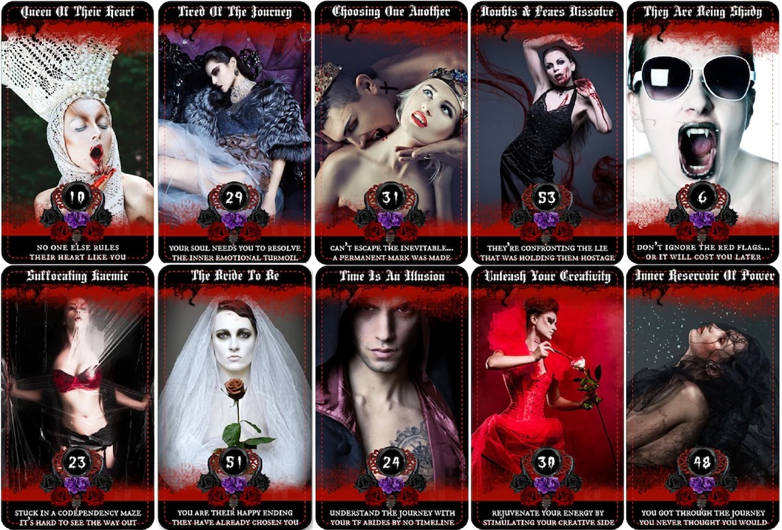 貨品介紹: The artist created this Vampire Theme deck for twin flame connections but not exclusive to just TF, can be used for any other love connection. Uncover the hidden truths within your union.