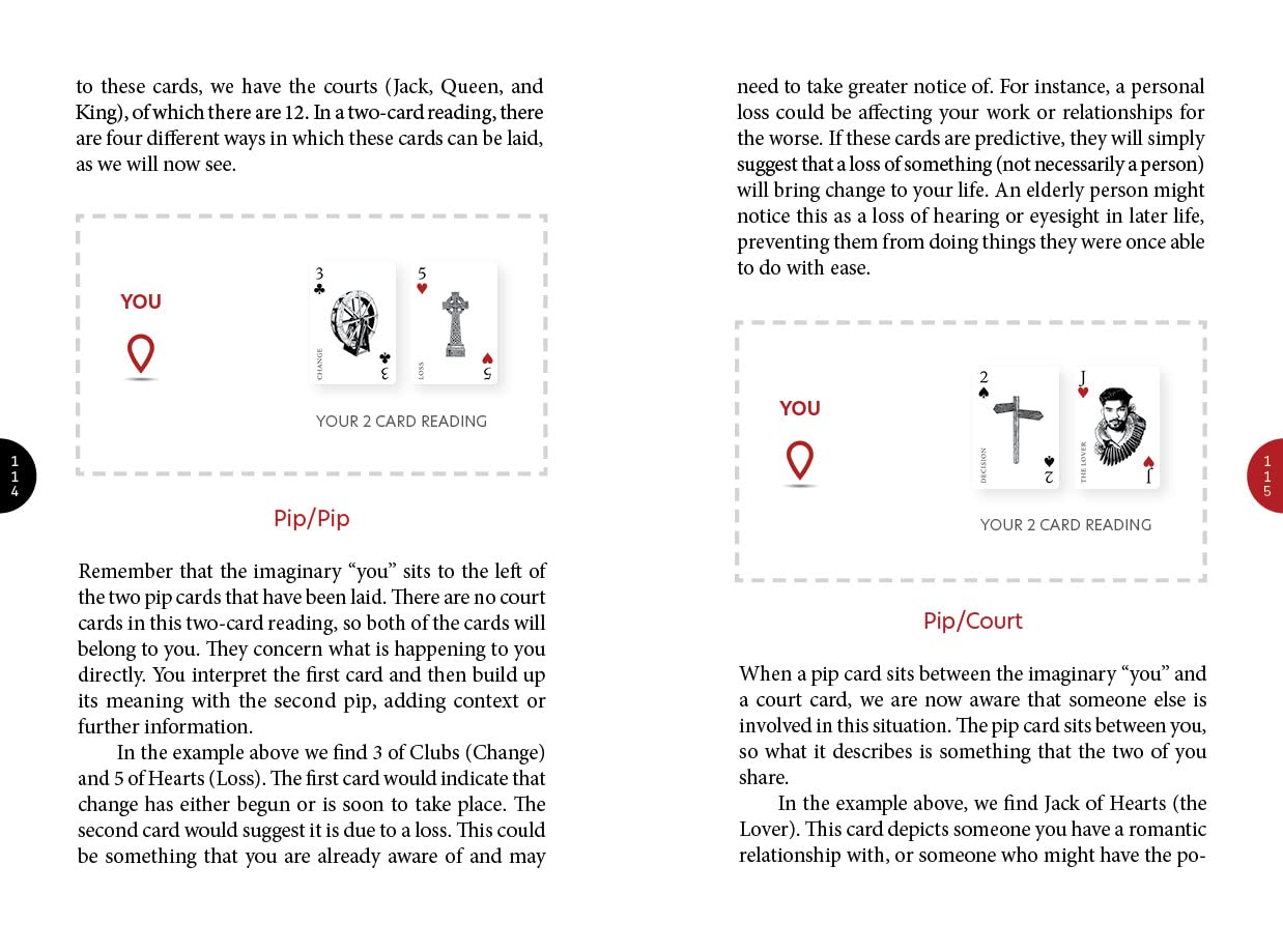 Much has been written about reading with playing cards, and many systems have been shared, but these methods have not always been easy to learn or remember. This 52-card deck changes that with a set of fully illustrated cards that show recognizable symbols with keywords that allow the diviner to read them right out of the box.