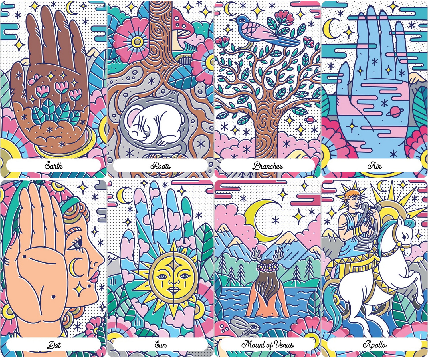 Palmistry is an ancient esoteric tradition practiced around the world. Interest in palmistry and chirosophy (also known as chiromancy) derives from the fascinating idea that the physical body carries signs of the soul that can be interpreted to reveal profound aspects of the individual. With contemporary pop art illustrations Oracle of Destiny combines evocative symbols, archetypal references and elements of astrology in a dynamic method that offers personal insights and divinatory messages. Includes 50 cards and 128-page guidebook.