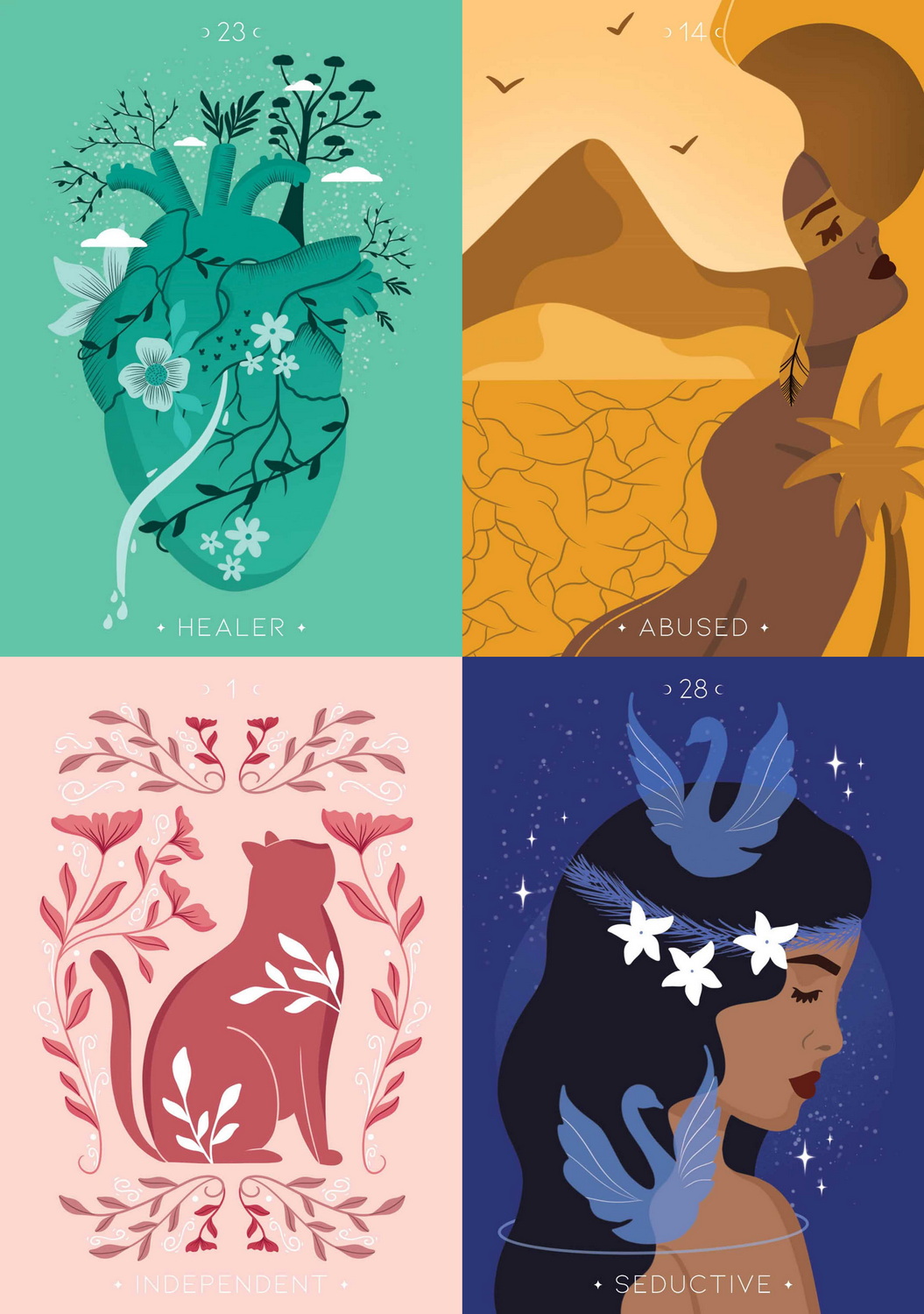 Empowering and poetic, the oracle consists of 44 sublime, inspiring cards divided into seven families, each embodying the energy of a feminine archetype such as the Amazon, the Matriarch, the Sensual Woman, and the Mystic Woman.