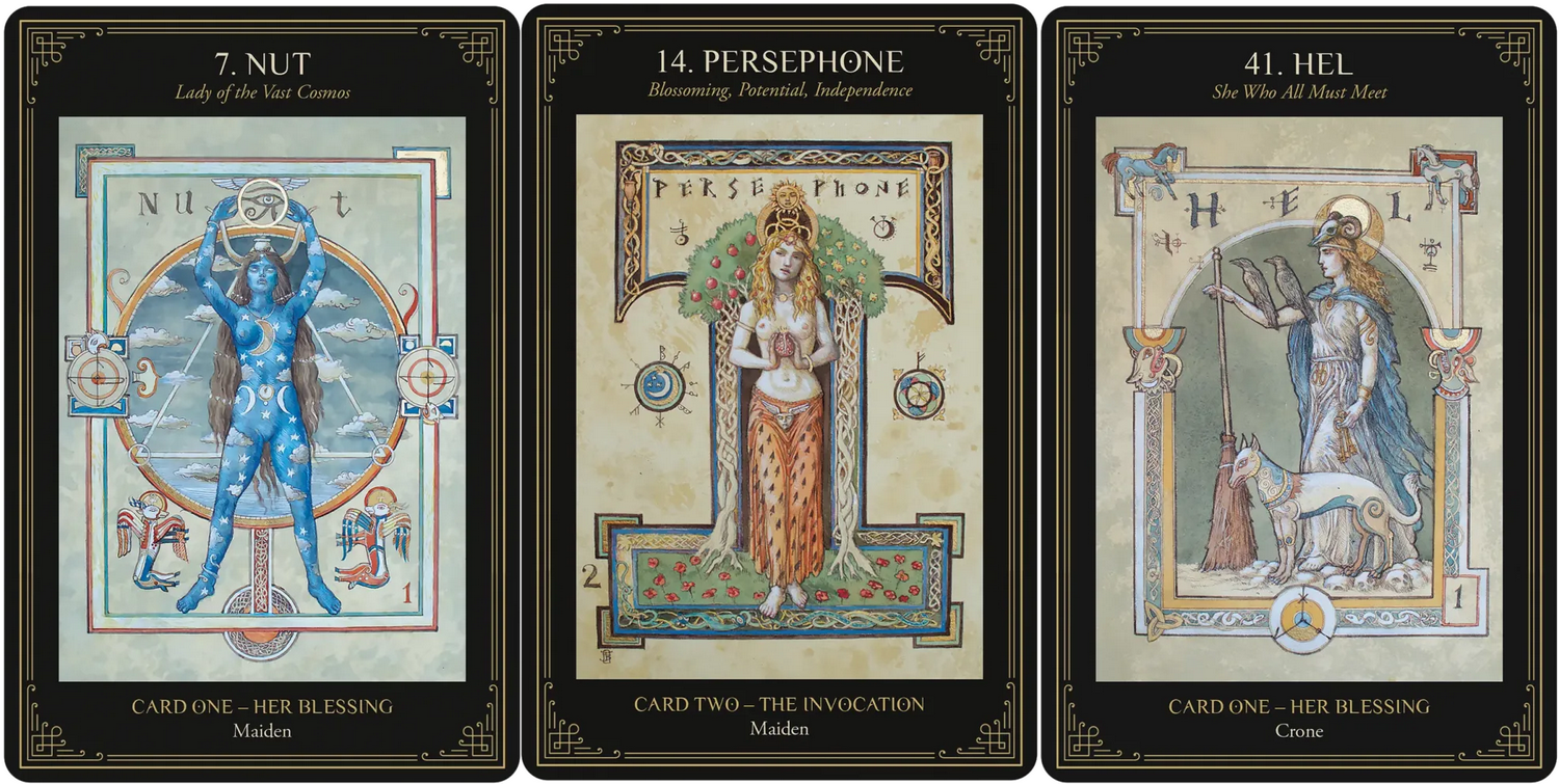 Weave and reweave your fate with The Norns, rise in blessed rebellion with Blodeuwedd, drink from Cerridwen’s cauldron, and journey safely through darkness with Persephone. With rich, authentic symbology and deep, compassionate messages, this oracle is your way to experience the Great Goddess, reclaim her power, and choose a life defined not by challenge but by illumination and unshakeable spiritual presence.