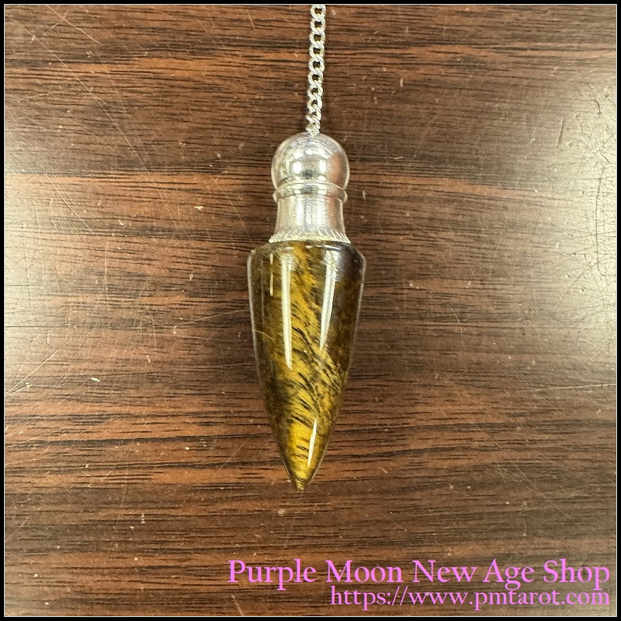 貨品介紹: This Golden Tiger Eye crystal pendulum features a chamber within allowing you to fill it with spell oil, crystal chips, herb, ash or dirt, or any magical aid for your divination and dowsing.