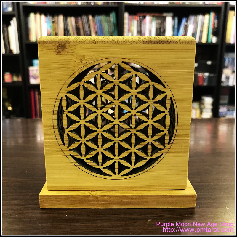 用竹子製成的帶有生命之花圖騰的冥想香盒。