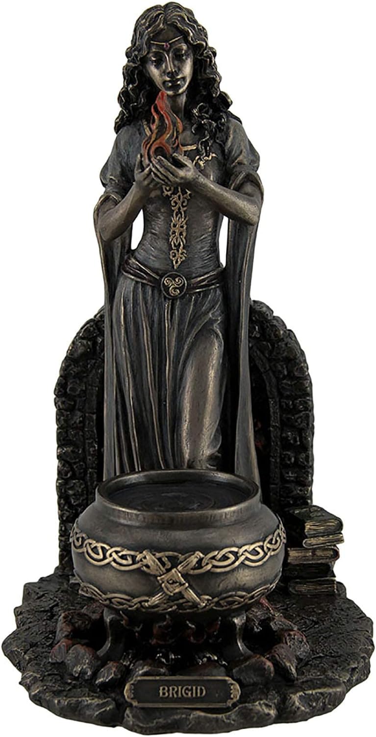 This Brigid statue is a striking piece rich with Celtic symbols and a must-have piece for any follewers of nature religions.