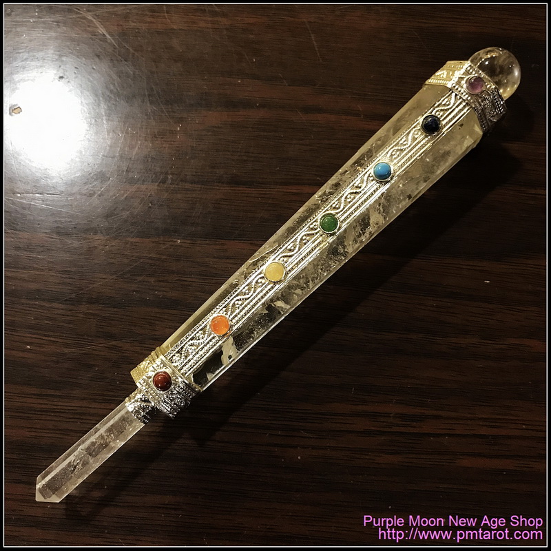 貨品介紹: 7 Chakra Clear Quartz Wand is made from a large quartz crystal point and is tipped with a smaller quartz point and sports a cap made of a quartz sphere.Running down the length are semi-precious stones representing the Chakra points; making this wand a perfect focus for rituals and meditations designed to work on your Chakra balance.