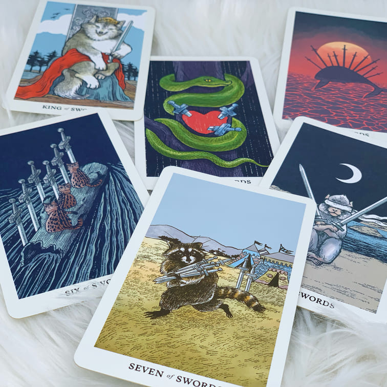 The Tarot Deck is created by Thai Artist Kanitsart S., author of the Stray Cat Tarot, Aibo Dog Tarot, Lunalapin Tarot, etc. The deck is a powerful Tarot Deck despite its cute Animal images, as those who own the deck claimed that they can sense a strong connection when reading the cards. Into the Wild Tarot & Oracle Deck is a powerful tool to do Psychic Reading/Tarot Card Reading/FortuneTelling.