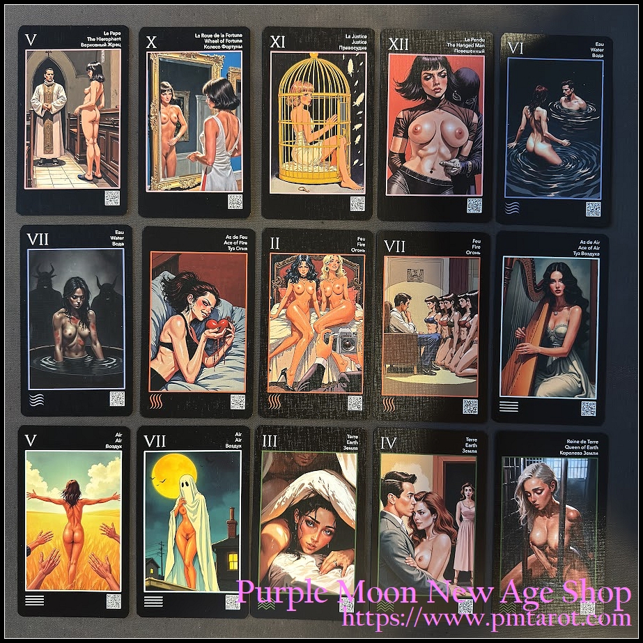 貨品介紹: 創造一副真正迷人且美觀的色情塔羅牌的想法在我們的團隊中已經醞釀了很長時間。我們仔細研究了該領域中存在的一切——從具有深刻象徵意義和完整敘述的知名收藏品,到那些曾經敢於在天真的好奇心和大膽的啟示之間尋找界限的人所啟發的稀有甲板。透過這次探索,有一點變得清晰起來:雖然色情塔羅牌的內容和潛在含義已經達到了很高的水平,但視覺效果往往讓人感覺遙遠而正式。他們很少邀請你停留在一張卡牌上,探索它的細節,或揭示它的更深層的解釋。我們想改變這種狀況。