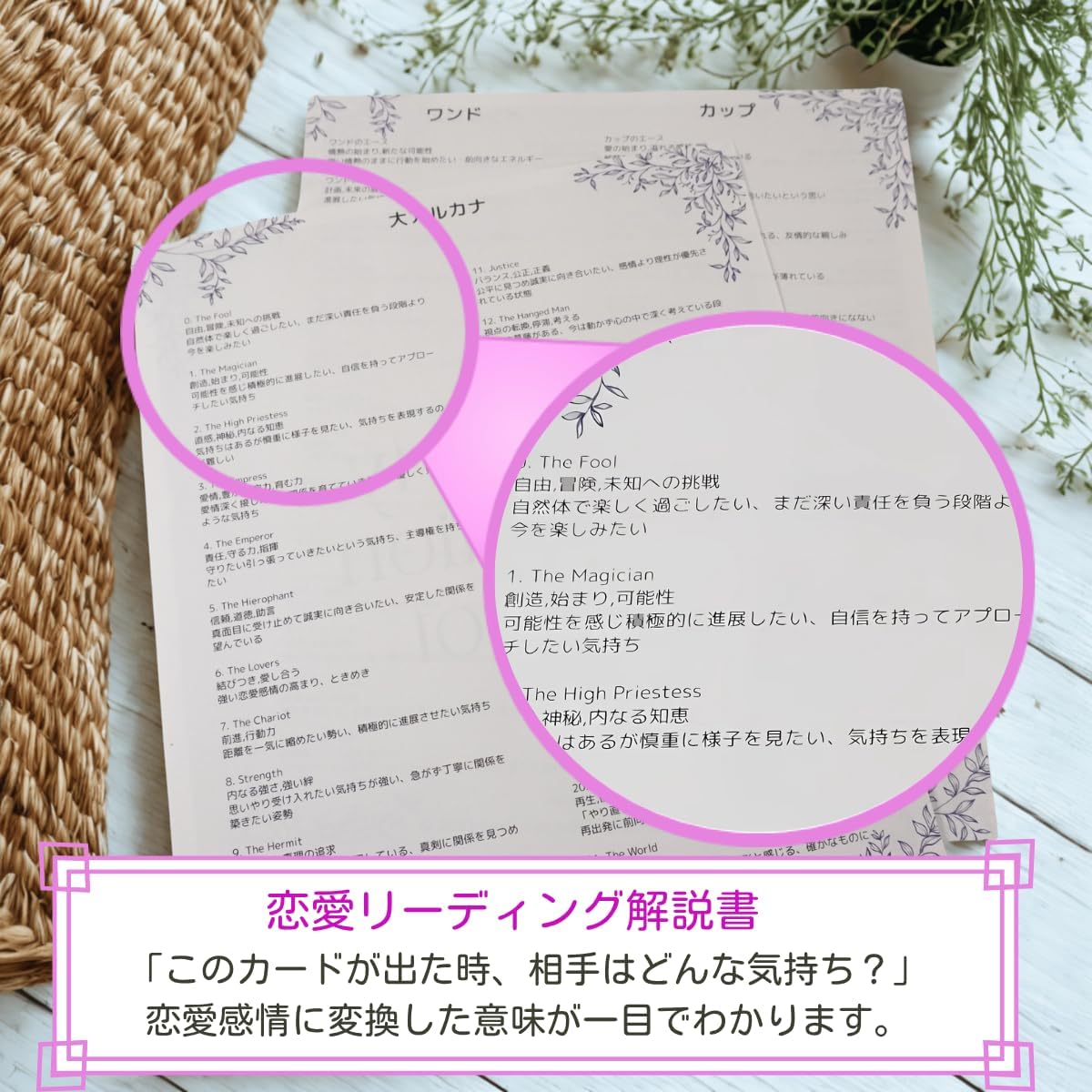 戀愛導向專屬指南 附帶說明書除了包含萊德偉特(Rider-Waite)的基礎定義,更額外收錄了**「戀愛感情轉化解析」**,詳細說明當該牌出現時,對方的心理狀態與情感傾向。