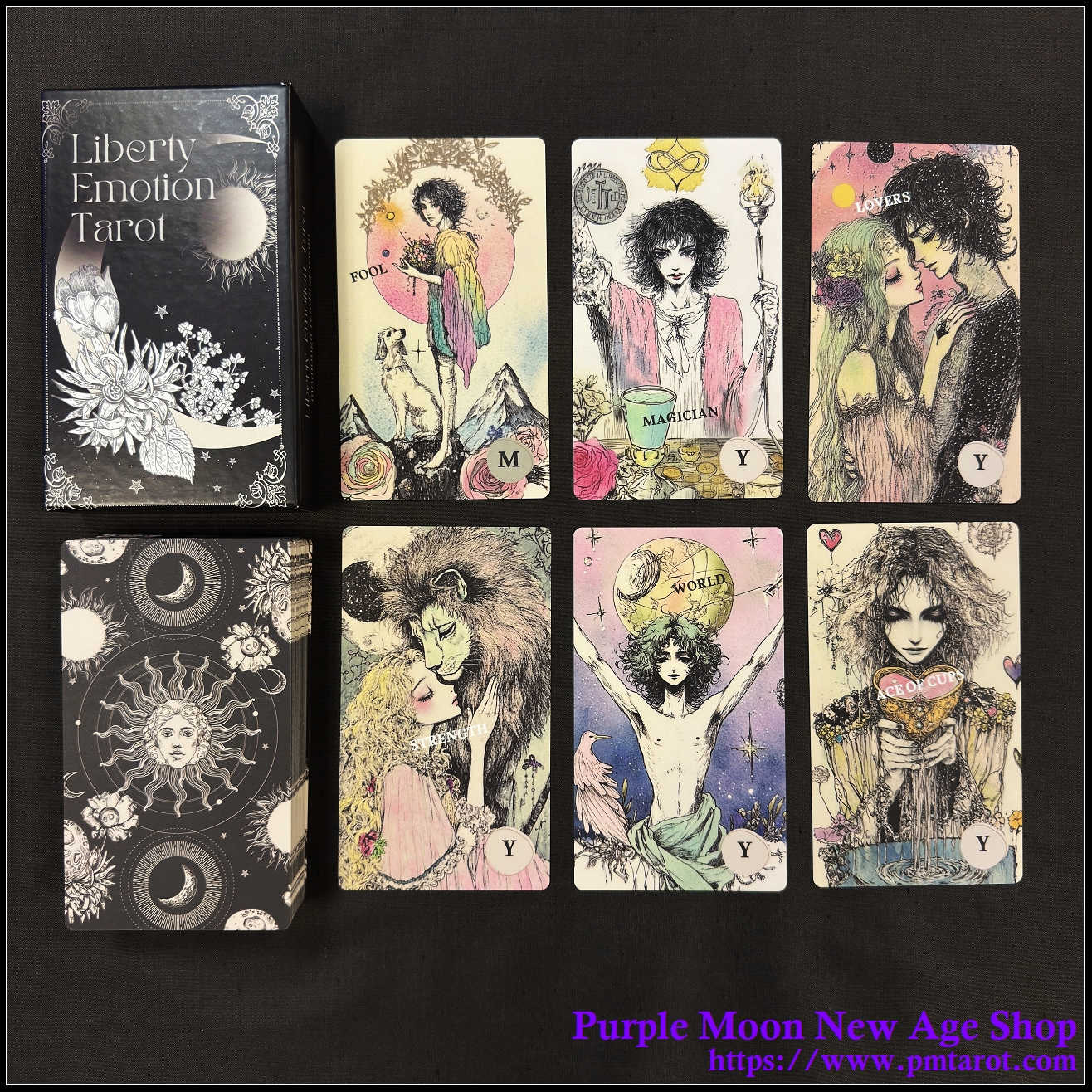 店主評語: 這是一副真正從「實戰需求」出發的牌卡。momonga 老師將其多年的戀愛諮詢經驗轉化為視覺語言,讓《Liberty Emotion Tarot》不只是一副牌,更像是一位隨身的情感翻譯官,幫你讀懂那些未曾說出口的心意。