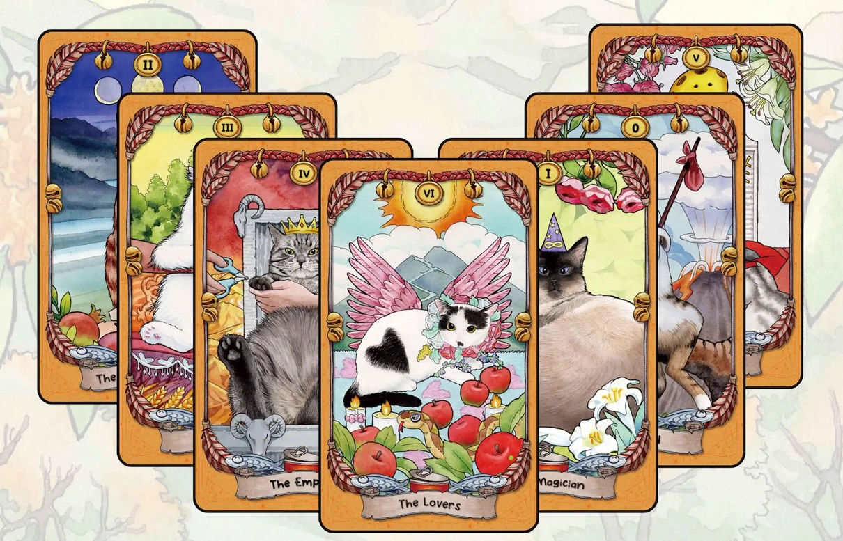 每張卡牌都是根據我們真實救助的流浪貓形象再將塔羅牌面含意與貓咪真實經歷與特徵結合繪製而成。最特殊的一張牌是死神牌,這張牌既象徵結束也象徵開始,四隻花貓代表已經離開的四隻小貓,如果真的有貓星球,希望牠們這次不要再遭受這麼多痛苦。