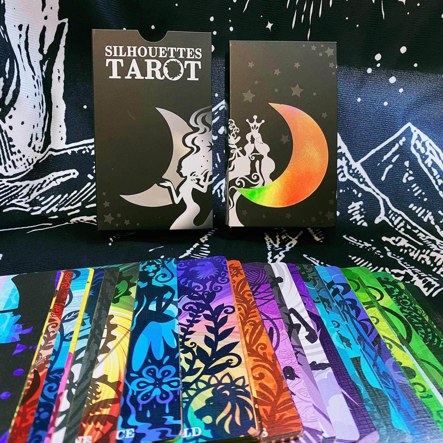This deck has artfully integrated classic WS images and symbols with his own vision, aesthetic and perspective. Having both collection and practical value, Silhouettes Tarot meets the needs of everyone from general audience to amateurs to professionals.