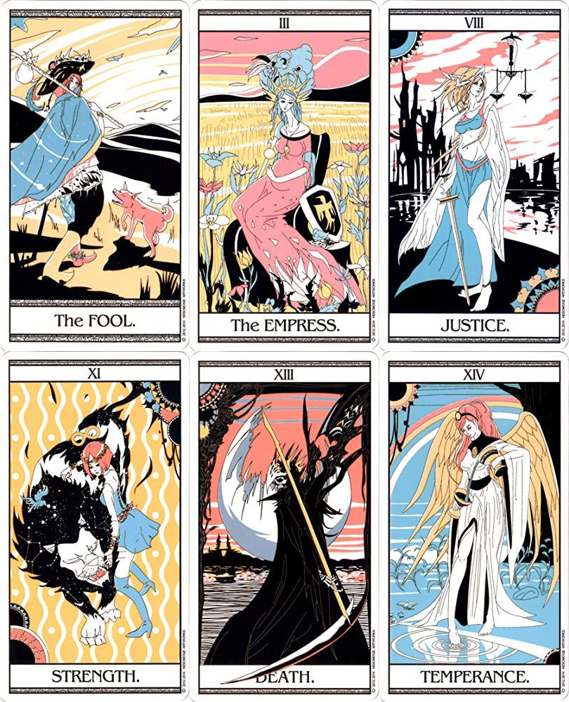 這套是日本出版的塔羅牌。藝術家川口忠彥繞著繪畫領域的工作,與不同企業進行合作,真正想讓藝術很廣泛的被推廣,成就了這個青鳥塔羅牌的誕生。經過西方占星學家三上牧的監修,使這個青鳥塔羅牌成為從初學者到專業人士都能輕鬆上手的牌卡,減少色彩營造出一個很神秘的畫面,刻意忘創造出裝飾框的範圍之美。而將現代化的元素,加上保留傳統的塔羅牌的世界觀,讓這個青鳥塔羅牌成為精緻又富有美感,而展現個人風格強烈的塔羅藝術作品。