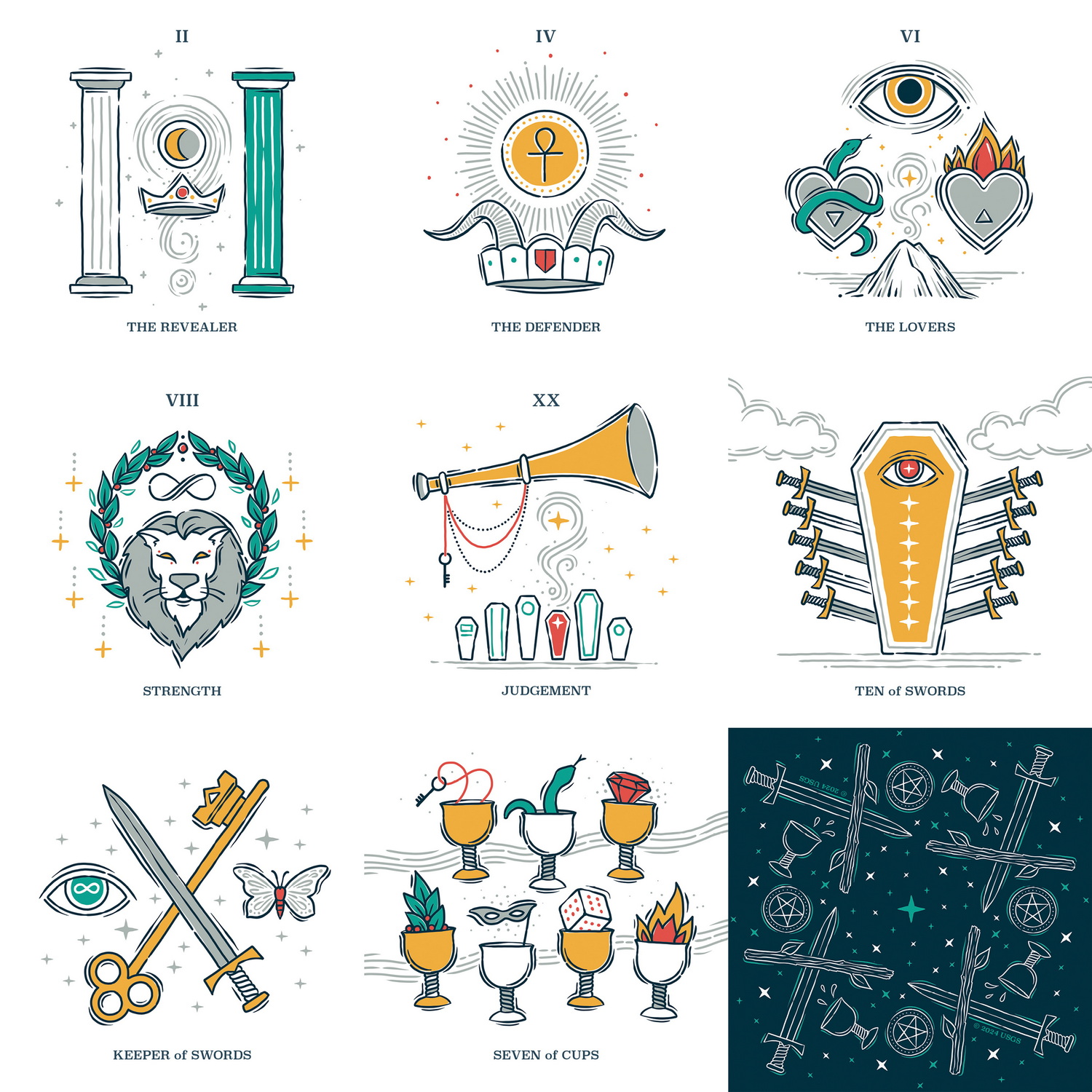 This beautifully concise, 78-card tarot deck is ideal for both beginners and seasoned readers. It includes a prompt sheet of card meanings and reimagined, genderless card titles such as: The Apprentice (Page), The Champion (Knight), The Keeper (Queen), The Crown (King), The Revealer (High Priestess), The Proclaimer (Hierophant), The Nurturer (Empress), The Defender (Emperor). This square-shaped deck's uncluttered imagery makes space for the reader's own personal interpretations and wisdom.