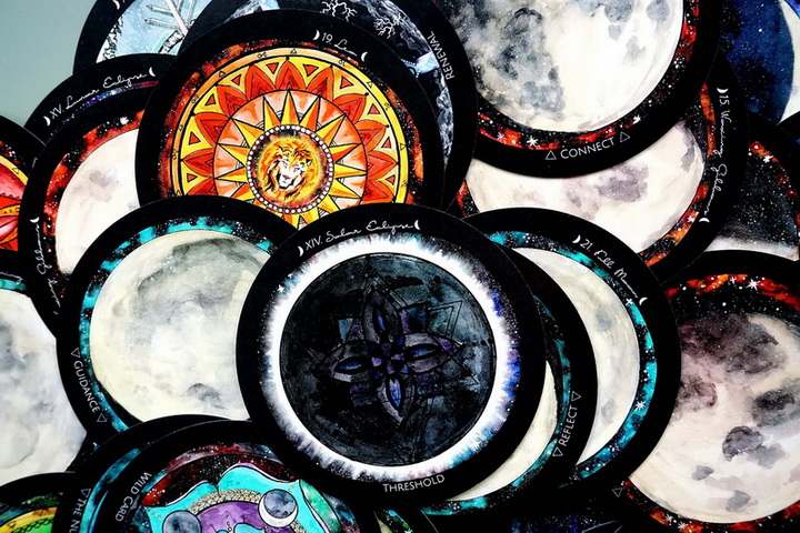 The deck contains 56 cards of Lunar guidance including Full Moondalas, Zodiac Moondalas, and Moon phase cards to help you connect with the energies of the Luna.