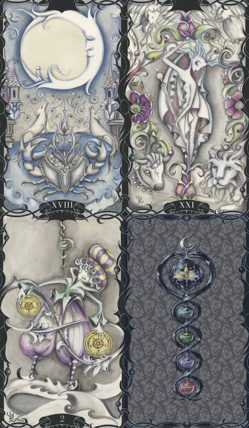 貨品介紹: Curvy, sinuous lines, an elegant silver palette, fairy-like dancing creatures in a quirky Tim Burton setting: the Tarot of the Enchanted Garden has a unique and mysterious atmosphere that inspires curiosity and sparks the magic within you. This deck is an invitation to a fabulous ball in a faraway land. Will you join the dance?