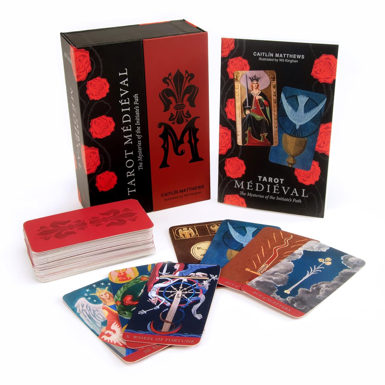 The history of Tarot Médiéval reads like an adventure novel. It was a French Tarot originally created by Francis Rolt-Wheeler and artist Christian Loring. Published in the fateful year of 1939, nearly every copy was destroyed the following year when France was invaded. Caitlín Matthews has translated and edited Rolt-Wheeler’s text and written new material for this beautiful Tarot, whose art has been painstakingly restored by renowned artist Wil Kinghan.
