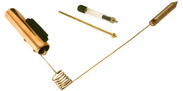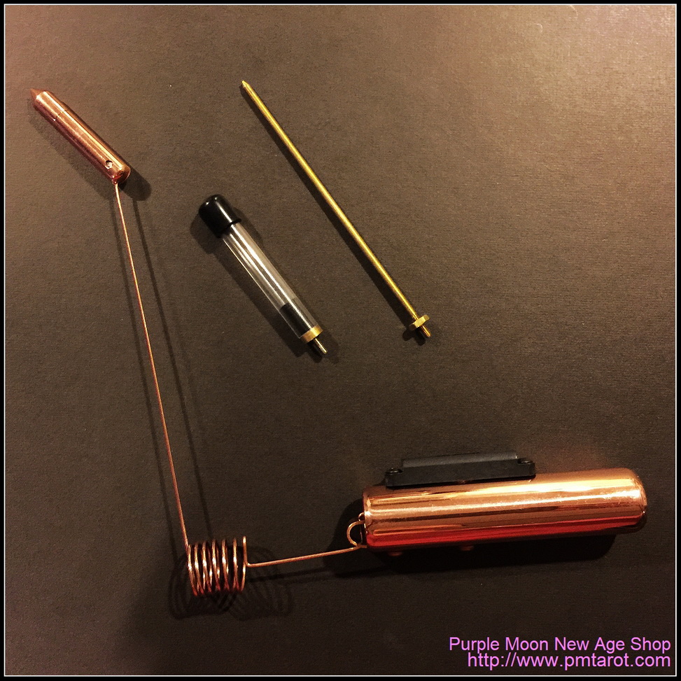 The new Professional AURAMETER models include "Leveler Bubble" for consistent "start action"; Detachable Pointer Tip, Map-Needle Pointer attachment for map dowsing and Hollow Witness Pointer are included, all with custom carrying case.