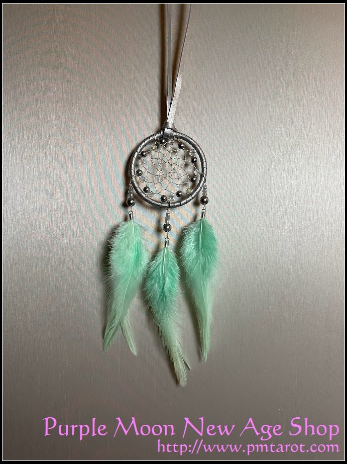 Product Descrpition: Simple dream catcher decorated with feathers and beads. These are often hung above cribs or in the windows and above doorways of the rooms where children sleep and sometime near the sleep area of adults with troubled sleep to catch the bad dreams and the spirits who send them within the web of the dream catcher.