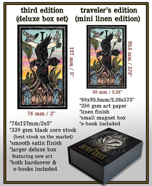 Product Descrpition: Printed on 350 gsm art paper with a matte linen finish, the cards will measure 2.36" x 3.75" (60 mm * 95.5 mm). The box will be a small chipboard box with a magnetic closure.