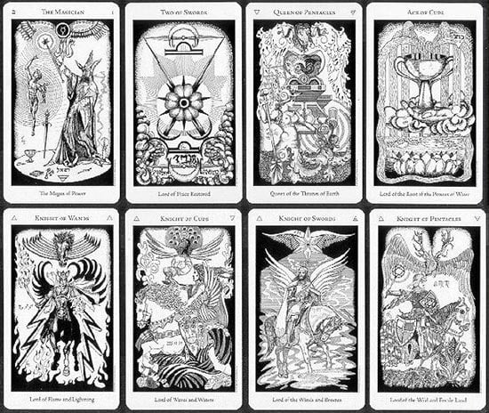 Godfrey Dowson’s subtle black and white designs emphasize the Golden Dawn’s astrological attributes with further sephirotic, angelic, geomantic, numerical, and kabbalistic elements. All 78 cards feature an exquisite level of detail that highlights the powerful symbolism.
