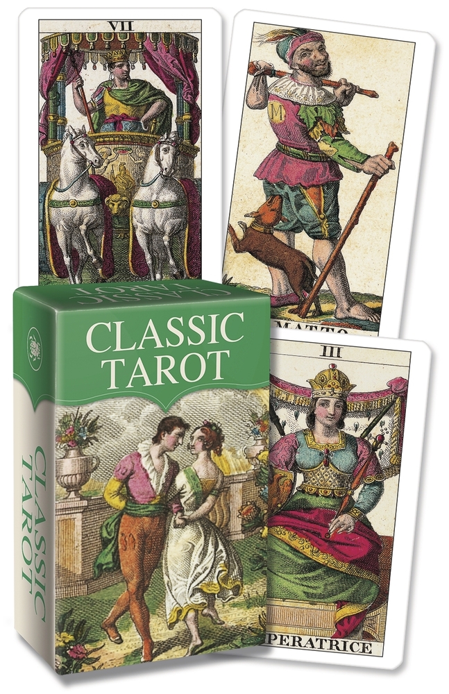 Product Descrpition: Printed on premium black-core cardstock, this mini edition of Lo Scarabeo's Classic Tarot is perfect for on-the-go readings. The work of Carlo Della Rocca, one of the most important engravers of the nineteenth century, is reproduced here, preserving the natural charm of his extremely refined craft. This beautiful deck is small enough to fit in a pocket or purse so you can carry it everywhere.