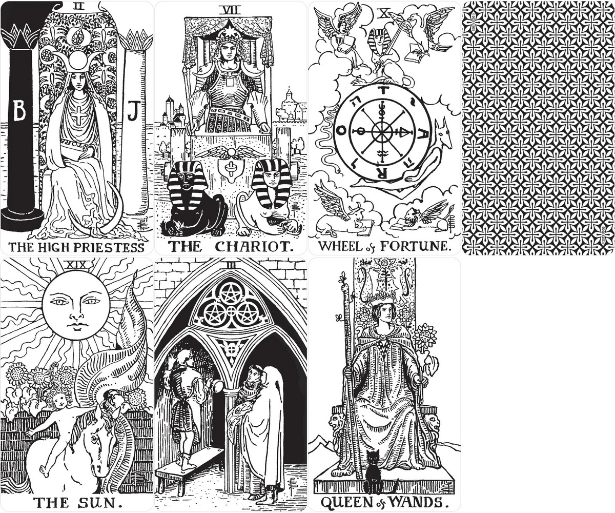 Product Descrpition: The Black & White Rider-Waite® Tarot features the line artwork and hand-drawn titles created in 1909 by Pamela Colman Smith. The 78-card borderless deck has special black foil gilded edges, and is accompanied by a 54-page guidebook with upright and reversed meanings and ideas for tarot spreads.