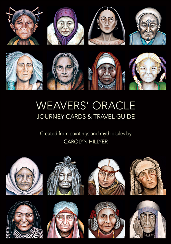 The Weavers’ Oracle book and 52 cards are created from thirty years of Carolyn’s paintings, mythic tales and work with women’s archetypal mysteries. It forms a wild alchemy of images and words that lay down original and inspiring trails into oracle lands. Beautifully printed, presented and packaged with wire bound book, cloth bag containing the cards and a fine-quality lidded storage box.