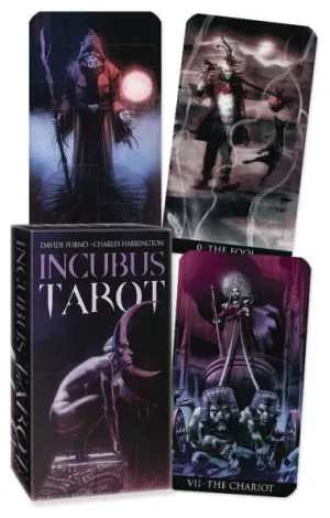 Product Descrpition: Hiding down in the obscure depths of our consciousness is a world that only reveals itself during sleep, when the mind has fallen into the hands of the subconscious. As your inhibitions fade, the dark lords of Incubus Tarot appear. This nightmare-themed deck by Davide Furnò opens the gate to a dark and barren realm, inhabited by surreal creatures that evoke your innermost fears and challenge you to overcome them. With Charles Harrington's book to guide you, your journey through danger will lead to remarkable insight and confidence.