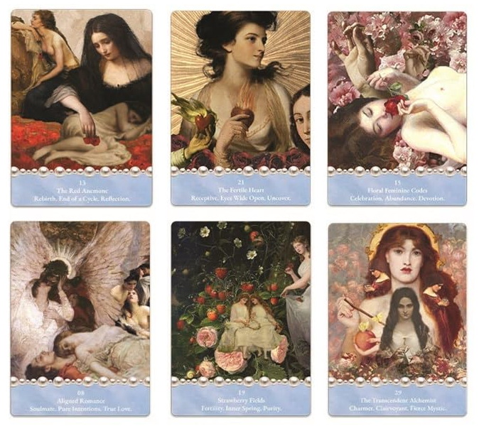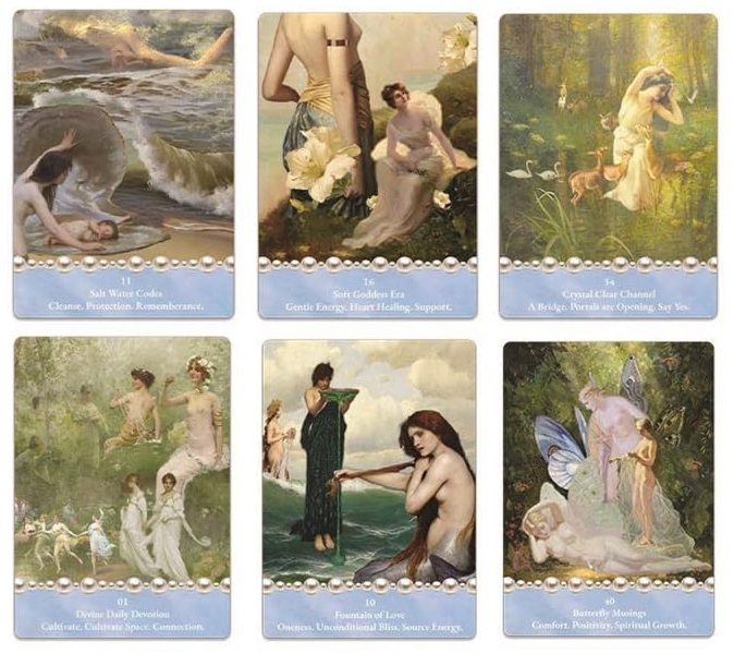 The Cosmic Pearl Oracle is a captivating and enchanting tool designed to awaken your heart, ignite your intuition, and embrace the power of the divine feminine archetype. This romantic and fluid deck is a tribute to Aphrodite, the goddess of love, beauty, and sensuality. By honoring the element of water, it invites you to dive deep into your heart center, exploring its depths and unlocking its profound wisdom.