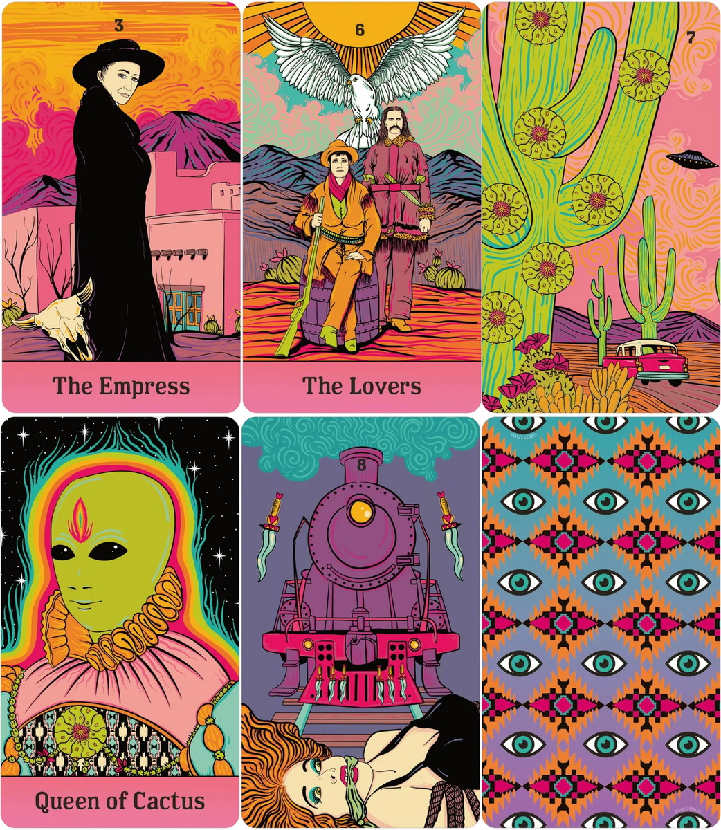 The desert holds a mystical beauty and cosmic energy unlike any other place on Earth. This captivating landscape emits an extremely high vibration that allows us to readily access the spiritual realm. Desert Illuminations Tarot delves into tarot archetypes while exploring the mythos and magic of the American Southwest. This boldly colorful deck also guides you to connect with the elements, chakras and astrology and open your consciousness to new possibilities.