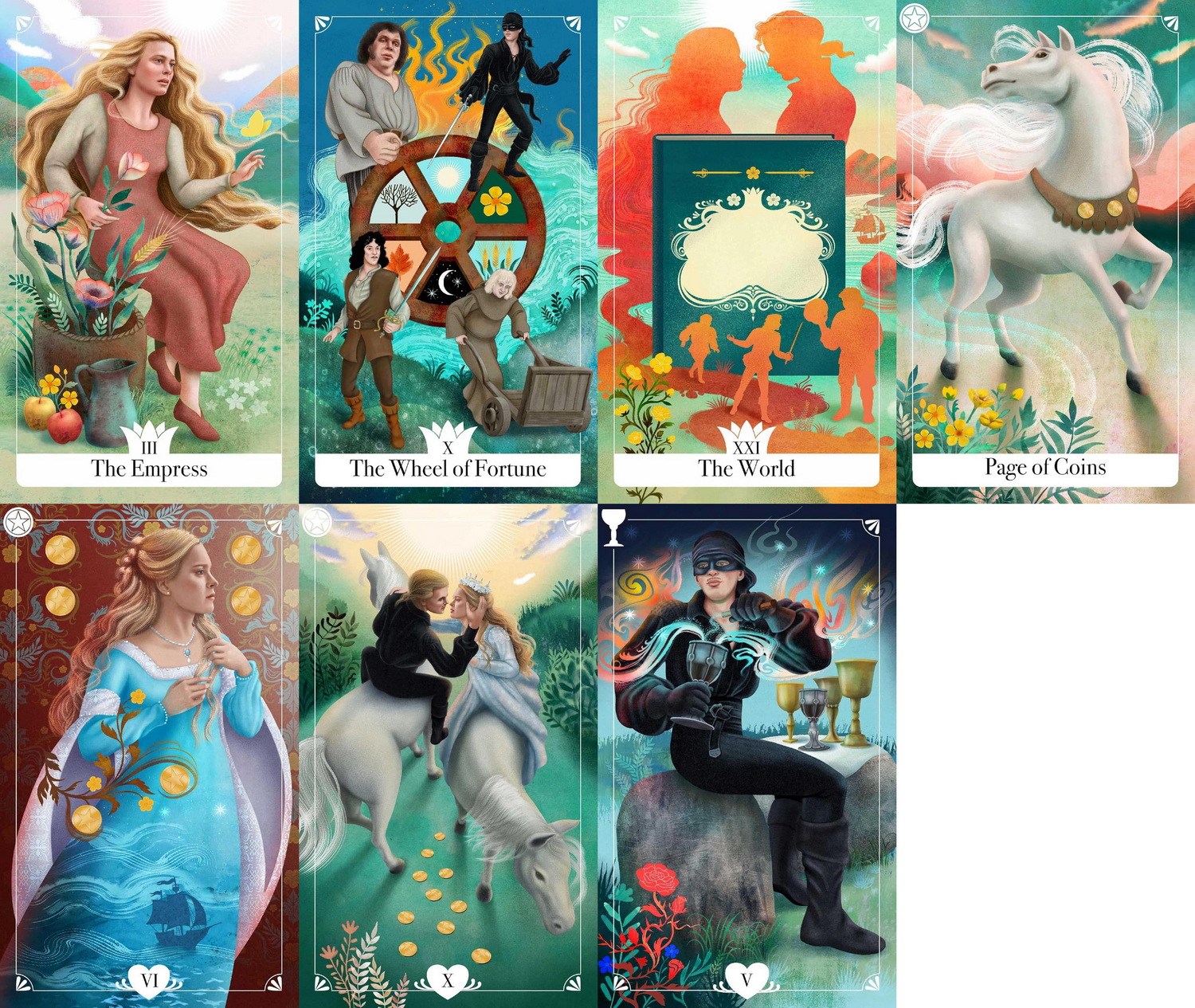 GORGEOUS ORIGINAL ARTWORK: Each of the 78 tarot cards in this deck features never-before-seen, stunning artwork of Westley, Buttercup, Inigo Montoya, Fezzik, and many more characters from this beloved film