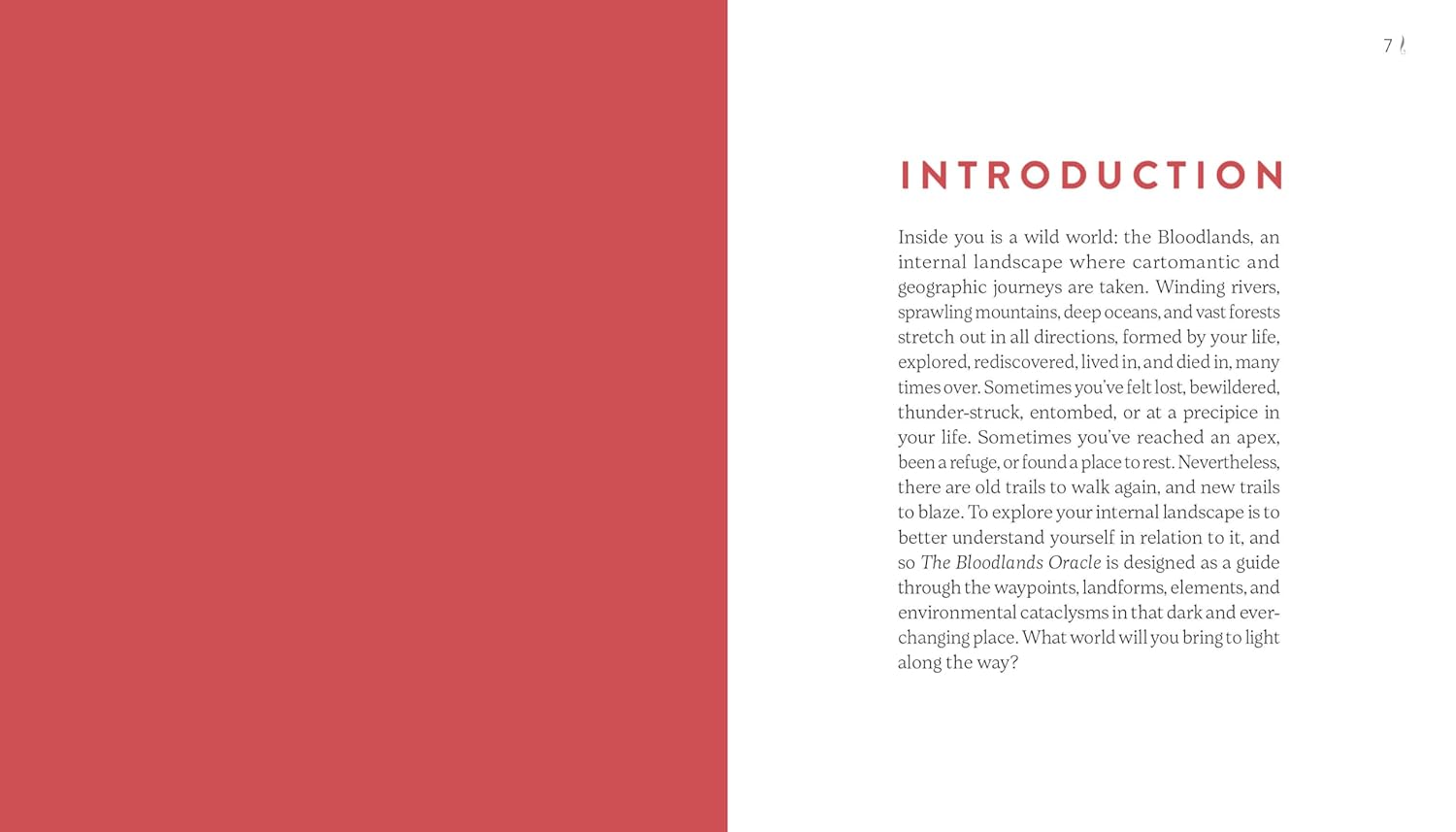 The Bloodlands Oracle invites readers through uncharted natural landscapes, where dark outer terrains await, prepared to spark inner wisdom. Inspired by the geography and elements of the natural world, readers immerse themselves in a transformative journey through the rivers, cliffs, and footpaths of nature, and discover the rich symbolism of the Earth’s many terrains. The Bloodlands Oracle beckons readers to embrace the wild landscapes of their soul, where they may find their deepest inner world reflected in wood, water, and stone.