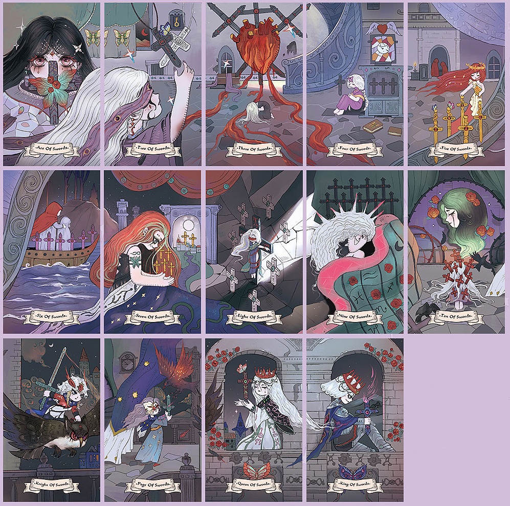 This deck is both a creative experiment and a heartfelt offering. We blended gothic vibes with a cute, loli-style aesthetic to explore themes of growth, emotional wounds, and healing. It’s a bold attempt at a new visual and narrative direction—each card crafted from our raw ideas to sketch to detailed painting, imbued with a strong sense of destiny and transformation.